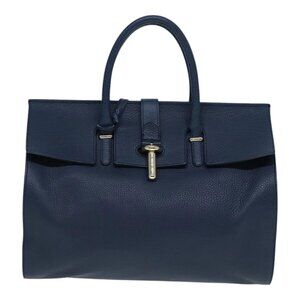 BALENCIAGA Tube Round Hand Bag Leather Navy Auth ki4912V