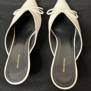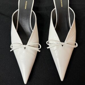 BALENCIAGA White Leather Knife Bow Mules - Size 38.5