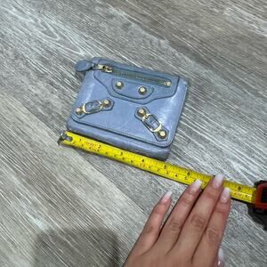 BALENCIAGA paris sky blue Leather trifold Wallet Coin Purse