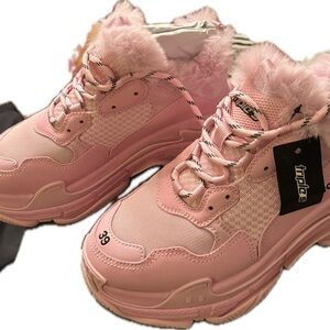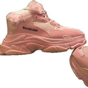 Authentic BALENCIAGA women’s TRIPLE S Sneaker Fur pink with pink fur EUR 39 US size 9 NWT