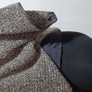 polyester and spandex for that fresh look and comfortable feel colors are black, brown, white with silver metallic threads