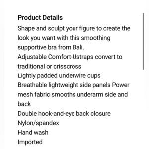 BALI ONE SMOOTH U SIDE SMOOTHING BRA 44D NEW STYLE 6548