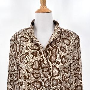 BALLA VALENTINA Shirt Womens Medium Cream Brown Snake Python Print Silk Blouse