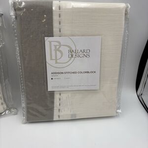 BALLARD DESIGNS LINEN GREY & WHITE CLASSIC (2) STANDARD PILLOW SHAMS 20X26