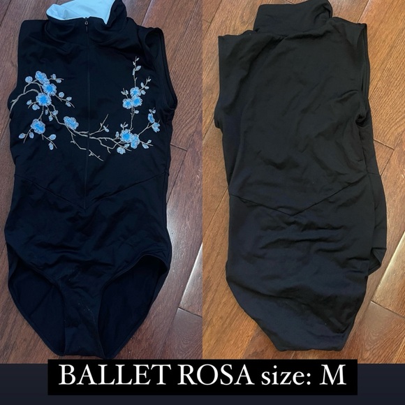 Black leotard with flower detail. zipper goes down to mid chest
