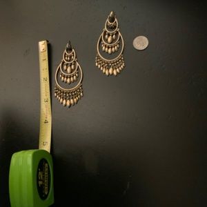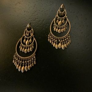 These three-tier drop earrings shine beautifully in polished brass. With intricate petite teardrop charms dangling below they are positively superb. LIKE THEM? BUY THEM! AND THEN GO PARTY! ;) HAVE FUN!