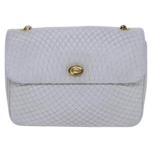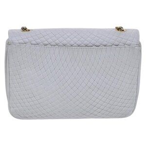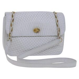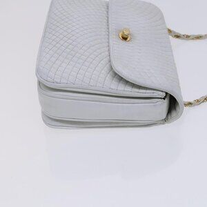 BALLY Chain Shoulder Bag Leather White Gold Auth ti2933
