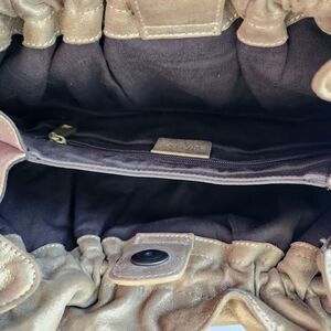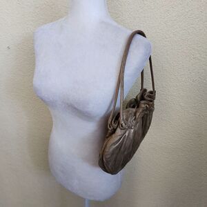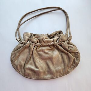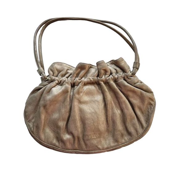 BALLY EUC Tan Gold Suede Leather Pleated Cloud Bag Puffy made In Italy $1,300