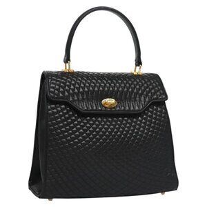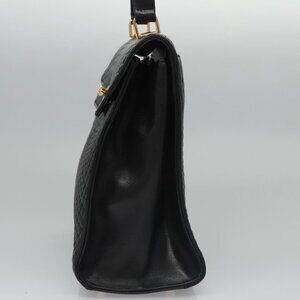 BALLY Hand Bag Leather Black Gold Auth BD031