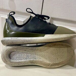 BALLY MADE IN ITALY SNEAKERS AESTHETIC GREEN OLIVE NEOPRENE BLACK LEATHER SZ 13