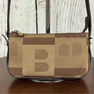BALLY Monogram Brown textile & leather shoulder crossbody pochette mini Bag y2k