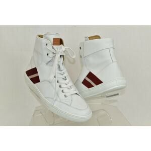 BALLY OLDANI WHITE LEATHER HI TOP LACE UP LOGO STRIPE CLASSIC SNEAKERS US 9 D
