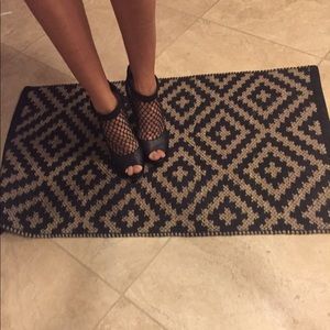 Extremely rare - seen no where other than in magazines. Mesh/fishnets peep toe with wood heels and gold accents. Shoes show wear only on ball of foot, -- heel and everywhere else in amazing condition! Wore less than 5 times. Size 39/8.5 in US. Comes with dustbag.