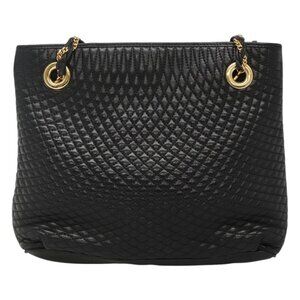 BALLY Quilted Chain Shoulder Bag Leather Black Gold Auth