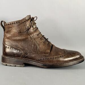 BALLY Size 10 Avery Brown Perforated Pebble Grain Leather Wingtip Boots