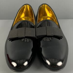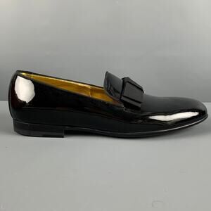 BALLY dress loafers come in black patent leather and a bowtie detail. Made in Switzerland. Comes with Box, and Dust Bag.