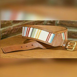 BALLY Stripe Canvas Leather Wide Waist Belt 34