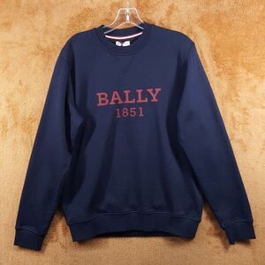 BALLY Sweatshirt Mens Medium Navy Pullover Crew Logo 1851 Cotton $340