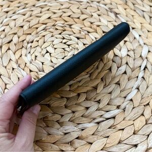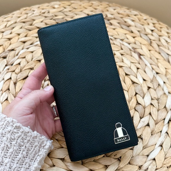 Gorgeous BALLY black pebbled leather flip open wallet.