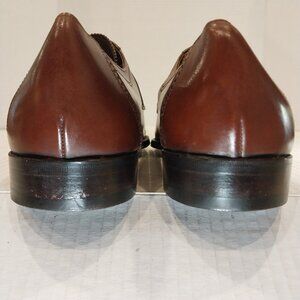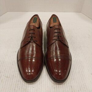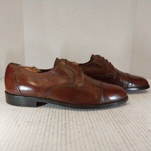 Bally men's size 9.5 D (M) brown leather cap toe brogue Derby made in Italy. Great looking shoes by luxury shoemaker Bally in very good/excellent condition with some typical preowned creases & showing little wear. Priced to sell at 90% off Bally current Derby/Oxford pricing...MSRP $690>. Save over $600 buying preowned & make these yours...before someone else makes them theirs. Shoe trees are not included. Thanks for looking.