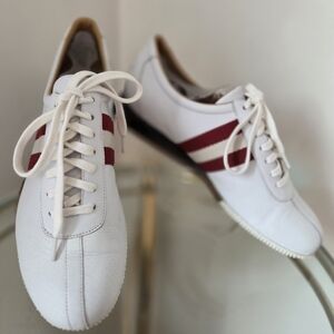 BALLY of Switzerland Leather Casual Sneakers White, Red Stripe Authentic EUC