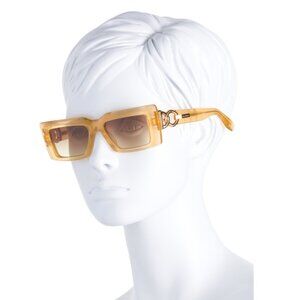 category 2 filter protection, translucent design, chain link detail, brand logo temple accents, oversized, thick frame, gold tone hardware, case, cleaning cloth and pouch included, case may vary, boxed