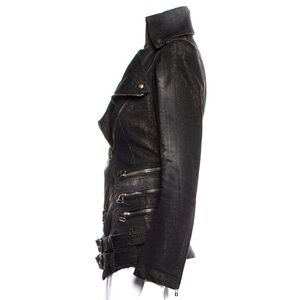 BALMAIN BLACK DISTRESSED BIKER JACKET SIZE S US 4 FR36 – POINTED COLLAR & BELTED WAIST