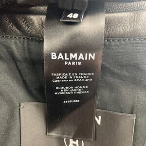 BALMAIN by Olivier Rousteing jacket comes in a black leather featuring a motorcycle style, ribbed hem, silver tone hardware, front pockets, epaulettes, and a full zip up closure.