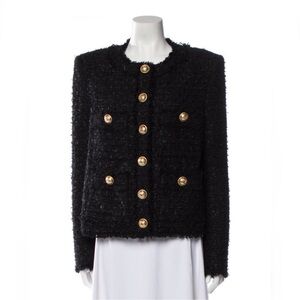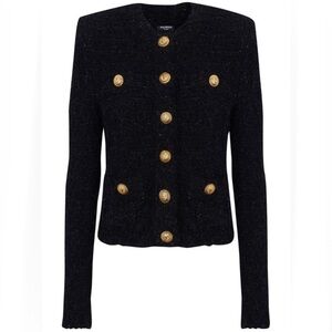 BALMAIN GOLD-BUTTON TWEED LUREX JACKET FOR WOMEN Size FR 42