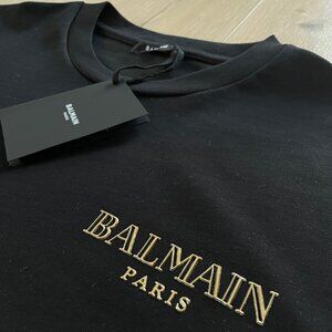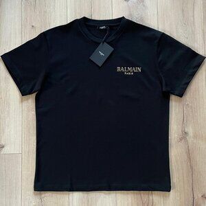 BALMAIN MEN'S BLACK COLOR BASIC COTTON T-SHIRT XLARGE SIZE