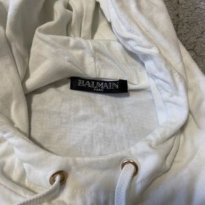 BALMAIN women's white sweatshirt with gold lettering, drawstring hoodie, 100% cotton