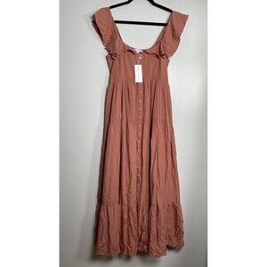 BALTIC BORN Ellie Ruffle Top Dress Medium Terracotta Mauve NEW Casual Pockets