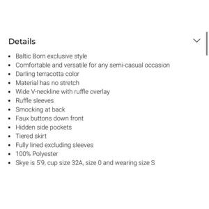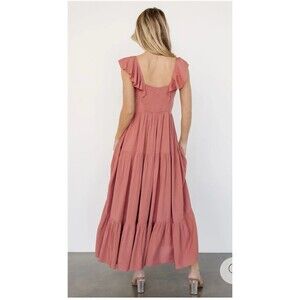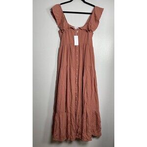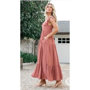 The BALTIC BORN Ellie Ruffle Top Dress in medium size is a stylish and versatile piece for the fall season. The terracotta mauve color and floral pattern add a touch of femininity to the dress, while the ruffle accents give it a trendy edge. With a maxi length and pockets, this dress is both comfortable and practical, perfect for a variety of occasions during the warmer months.