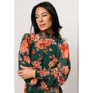 The Baltic Born Luciana Green Floral High Neck Sheer Sleeve Maxi Dress in size XL is a stylish and elegant dress perfect for any woman's wardrobe. This dress features a beautiful floral pattern in a vibrant green color, with long sleeves and a high neckline for a sophisticated look. The sheer sleeve adds a touch of femininity, while the maxi length flatters the figure. This dress is ideal for formal events, weddings, or any special occasion where you want to make a statement with your outfit.