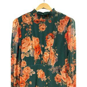 BALTIC BORN LUCIANA GREEN FLORAL HIGH NECK SHEER SLEEVE MAXI DRESS SZ XL