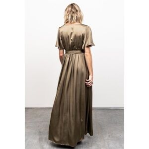 BALTIC BORN OLIVE GREEN SICILY SATIN MAXI DRESS SZ L