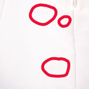 It's on the back shoot - past where the zipper is just left of center seam. I haven't touched it because I have learned if I don't know, leave it and someone who does know may have a shot. It happened when the Jr. Stylist kept the steam button too long... it's a couple little light gray spots. not easy to spot but better I point it out right away. I'm shooting another group tonight and I'll get a detailed shot... it is a couple spots as I look at it. I will post another pic tonight when I DL