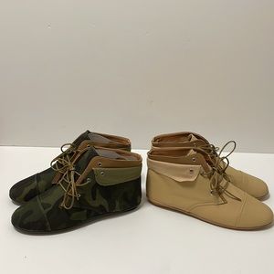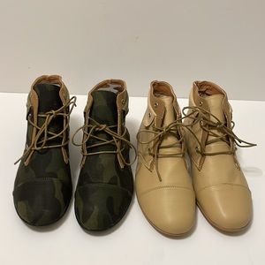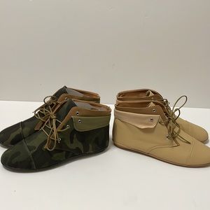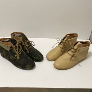 BAMBOO - 2 set Camouflage and Beige Lace up Flat Sole Boots Aidan Style (As Is new but may peel!) New - Size 6 1/2