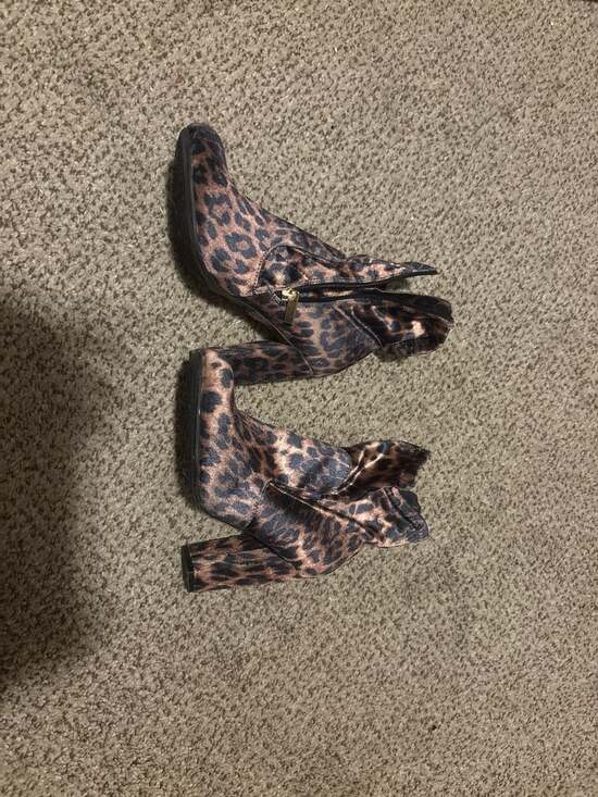 Bamboo Leopard Print Ankle Boots, Cheetah Pattern, Block Heel — Bold animal print footwear for a stylish night out.