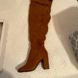 BAMBOO Brown Over the Knee Boots with Chunky Heel