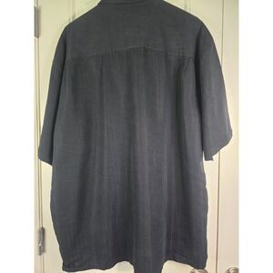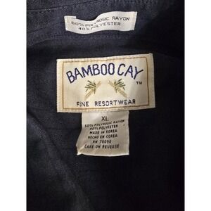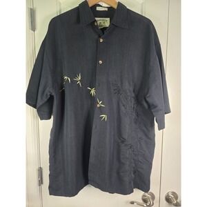 BAMBOO CAY Shirt Men XL Black Short Sleeve Button Embroidered EUC