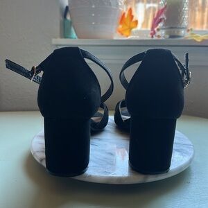 STYLE: Bamboo brand, open toe with a low chunky heel, criss cross design is super cute for any occasion, comfortable and easy to walk in, suede material, about 3 in heel, adjustable ankle strap