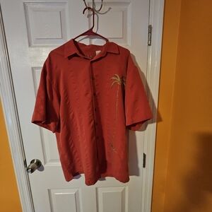 BAMBOO Cay Red Casual Shirt with Palm Design Mens Size LG