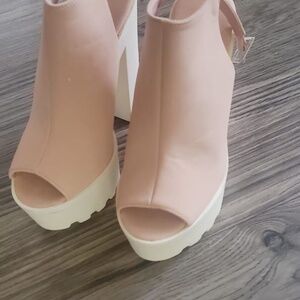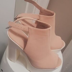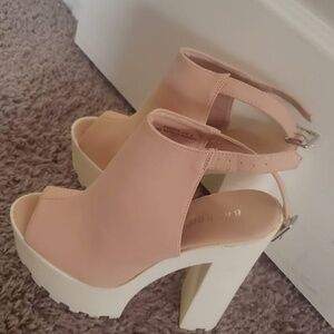 BAMBOO NUDE PEEPTOE PLATFORM BLOCK HEELS SANDALS 🌴