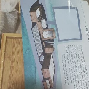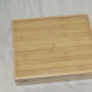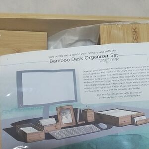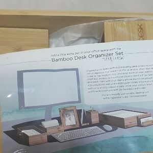Organize your desk with this elegant bamboo set. Perfect for a tidy workspace.