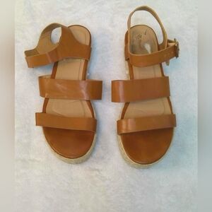 Gently used Bamboo tan faux leather platforms. 5