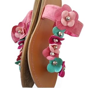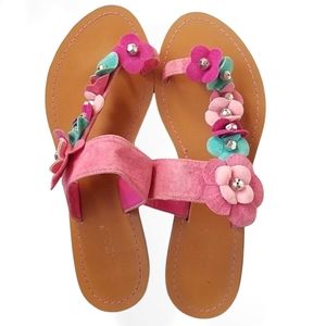 BAMBOO Thong Faux Suede Sandals with Flowers Size 7