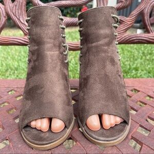 💋BAMBOO Vegan Suede Zip Back Open Toe Ankle Heeled Booties