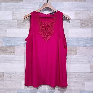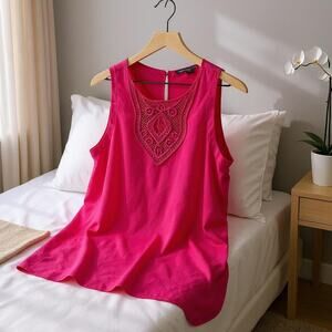 BANANA REPUBLIC 100% Silk Embroidered Shell Tank Top Pink Womens Large