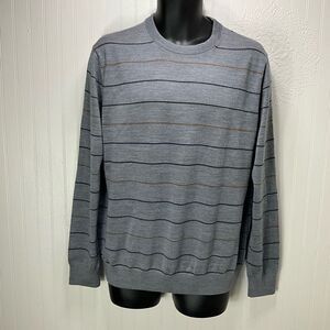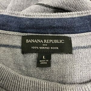 Men’s Banana Republic 100% Merino Wool crewneck sweater. Gray with multi colored stripes. Like new condition! Size Large